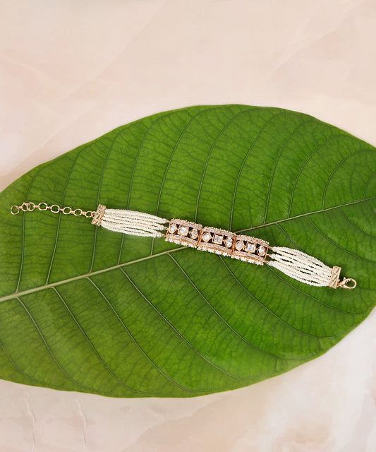 Rajasthan-Inspired Polki Bracelet with Gold Detailing and Pearls