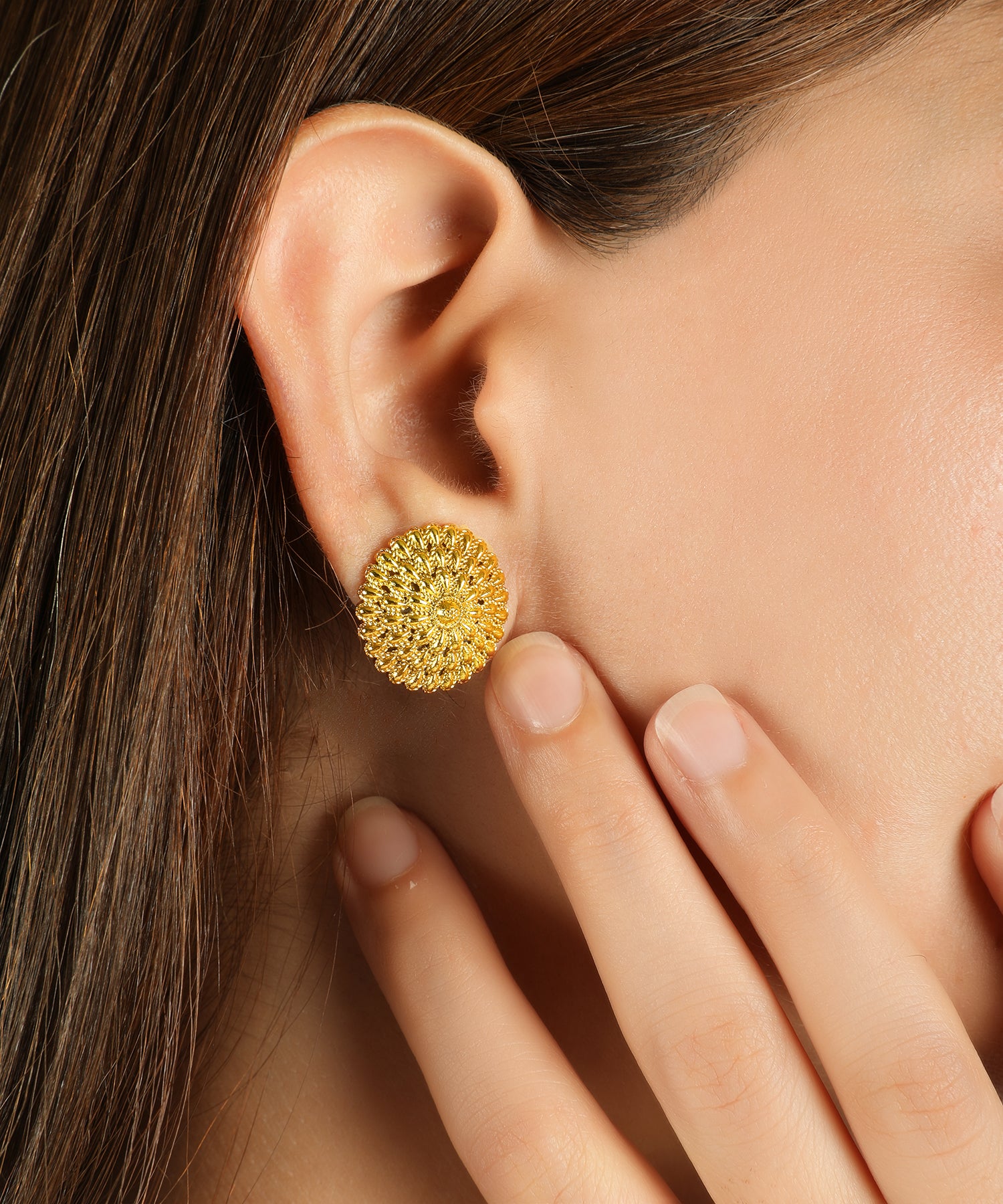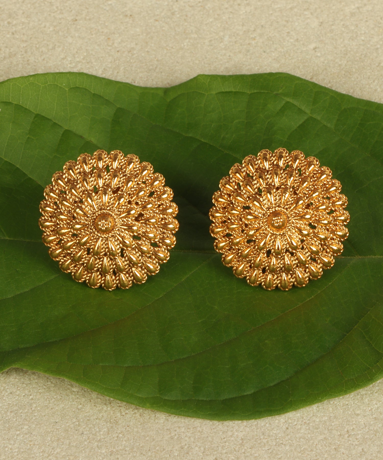 These stunning round floral gold-plated earrings embody timeless elegance and skilled artistry. Inspired by traditional Indian origins, the intricate design radiates heritage charm. Crafted with durable gold plating, they promise lasting brilliance while remaining lightweight and easy to wear. Perfect for festive occasions, weddings, or everyday style, they complement sarees, lehengas, and even chic western outfits. Their floral round shape symbolizes beauty and grace, making them an essential addition to any jewelry collection.
