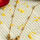 A delicately handcrafted temple-inspired mangalsutra designed for everyday elegance. | Features a minimal beaded pattern with antique gold detailing for a subtle yet traditional look. | The dual black-bead chain enhances durability while symbolizing auspiciousness and protection. | Lightweight and comfortable, perfect for daily wear without compromising heritage style. | Ideal for modern brides who prefer a blend of simplicity, tradition, and timeless charm.