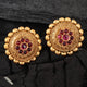 Handcrafted in luminous gold plating, these round stud earrings are adorned with radiant ruby stones arranged in a floral cluster. Rooted in India’s timeless artistry, the design combines cultural richness with modern wearability. Lightweight and easy to carry, they are ideal for weddings, festive occasions, or evening gatherings. The round silhouette enhances their classic charm, while the striking ruby-red contrast makes them a standout piece. Pair them with silk sarees, lehengas, or fusion ensembles for effortless elegance.