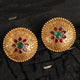 Round Gold Stud Earrings with Emerald & Ruby Floral Motif